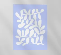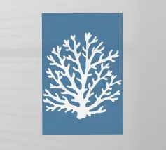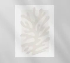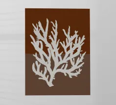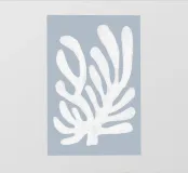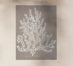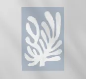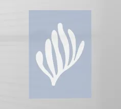 Opera d'arte minimalista con alghe bianche astratte o forme simili a coralli su uno sfondo grigio-blu tenue. Perfetto per un'estetica moderna e organica.