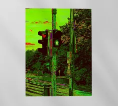 Ein Unbekannter, scheint hervor aus dem roten Höllenlicht und verwirrt Fußgänger und Autofahrer teuflisch.