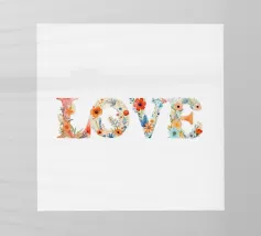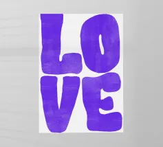 Abbracciate la bellezza dell'amore con questo wall art caratterizzato da uno splendido fiore viola e dalla scritta in grassetto 'Love'. Perfetto per aggiungere un tocco di romanticismo a poster, abbigliamento, adesivi, quaderni, tazze e asciugamani.