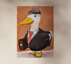 "Vi presentiamo il nostro papero elegante, che sfoggia occhiali alla moda e un allegro starnazzare. Questa stampa giocosa dona un tocco di estrosità e fascino a qualsiasi stanza. Perfetta per aggiungere un tocco divertente e spensierato al vostro arredamento!