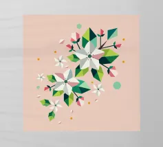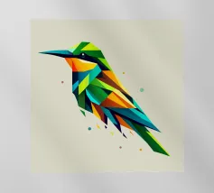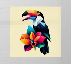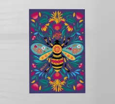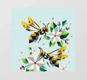Due api dettagliate e dai disegni geometrici ronzano intorno a luminosi fiori di melo. La combinazione di colori vivaci e di forme sorprendenti irradia energia e vicinanza alla natura. Disegno geometrico con api e fiori di melo Colori vivaci in giallo, verde, bianco e rosa Composizione dinamica e piena di movimento Arte moderna e poligonale con motivi naturali Perfetto per gli amanti della natura e del design