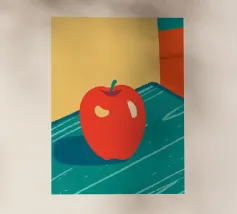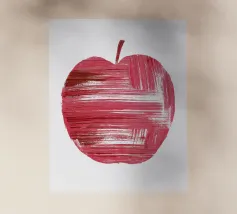 Una deliziosa mela rossa dipinta a mano in stile astratto angolare.