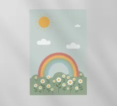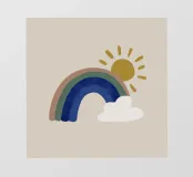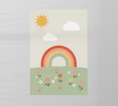 Questa illustrazione minimalista mostra un arcobaleno e nuvole bianche su uno sfondo beige, ideale per la camera di un bambino o di una bambina. Nei caldi colori della terra, il design boho solare irradia cordialità e pace. Perfetto per l'interior design scandinavo, porta un tocco di natura in casa.