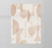 Il disegno presenta un'accattivante disposizione di cerchi, rettangoli e forme astratte di foglie sovrapposte, che alludono sottilmente a forme organiche all'interno della struttura. La texture granulosa aggiunge profondità e interesse visivo.