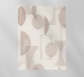 Il disegno presenta un'accattivante disposizione di cerchi, rettangoli e forme astratte di foglie sovrapposte, che alludono sottilmente a forme organiche all'interno della struttura. La texture granulosa aggiunge profondità e interesse visivo.