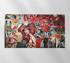Le opere di Josh Ruggs guardano in modo satirico al sogno americano e a tutti i discorsi sociali, politici e culturali che vi ruotano attorno. Utilizza oggetti familiari di uso quotidiano, celebrità ed estetica comica, chiaramente nella tradizione della Pop Art, come strumenti per visualizzare queste narrazioni della cultura di massa, del consumo e del culto della personalità. Per creare le sue immagini multistrato, l'americano lavora con spray, pittura acrilica, olio, inchiostro e praticamente con ogni superficie che gli capiti sotto mano.