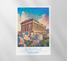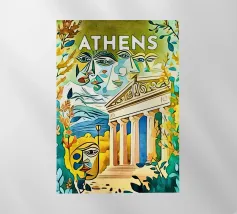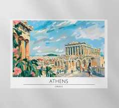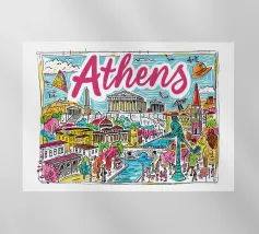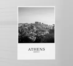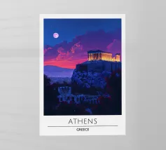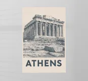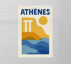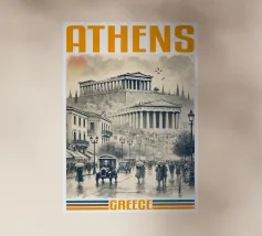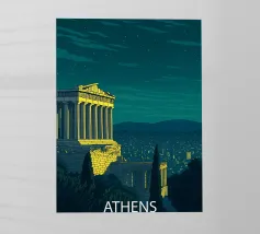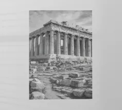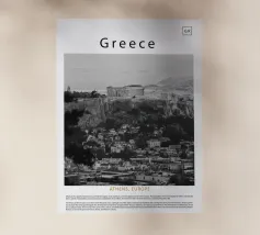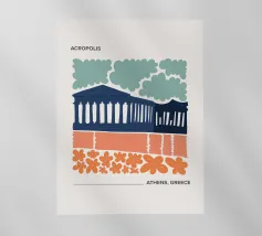 Il Partenone, simbolo dell'antichità classica, raffigurato in un'estetica linoleografica monocromatica. Questo poster di Atene combina la profondità storica con la chiarezza grafica ed è un'affermazione per gli appassionati di cultura greca, architettura e manifesti di città retrò. Ideale per salotti, spazi di lavoro o come regalo per gli amanti del mondo classico.