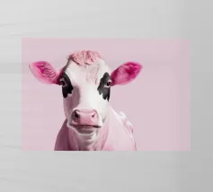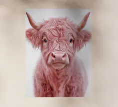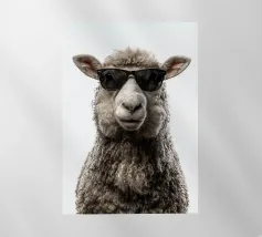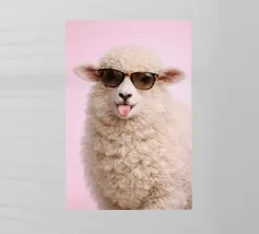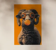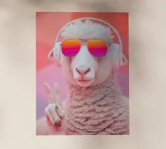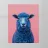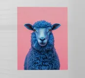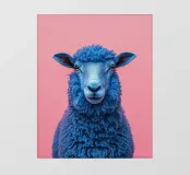 Un'immagine sorprendente di una pecora blu surreale con lana strutturata, che si staglia su uno sfondo rosa brillante. L'audace contrasto cromatico e la composizione minimalista creano un'estetica giocosa e moderna.