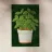 L'immagine mostra una pianta di basilico verde e rigogliosa, con foglie ampiamente venate, in un vaso bianco con base rosso-marrone. Lo sfondo è verde scuro e strutturato, per aggiungere profondità al motivo. Lo stile combina dettagli botanici realistici con un aspetto pittorico e leggermente astratto. L'illustrazione è allo stesso tempo vivace e rilassante, ideale per scopi decorativi o come parte di una serie ispirata alla natura. La scelta dei colori e la texture creano un'atmosfera calda e organica.