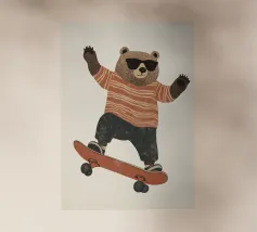Bear Skating, decorazione per la cameretta dei bambini, stampa per la nursery