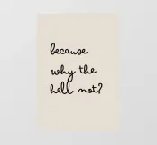 Aggiungete un tocco di spontaneità e divertimento al vostro spazio con questa stampa Because Why the Hell Not! Caratterizzato da una giocosa tipografia in stile manoscritto, questo disegno cattura l'atteggiamento spensierato di abbracciare le avventure della vita. Perfetta per qualsiasi stanza che necessiti di un po' di umorismo e audacia, questa stampa ricorda di dire sì alle nuove esperienze, di cogliere le opportunità e di vivere il momento. Ideale per camere da letto, uffici o come regalo per qualcuno che vive la vita alle proprie condizioni.