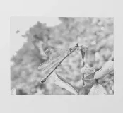 Le Domaine des Libellules in bianco e nero Puro silenzio e grazia, dove le ali diventano pennellate di piume e l'acqua uno specchio d'ombra pacifica. Un luogo fuori dal tempo, dove ogni volo sussurra l'eternità.