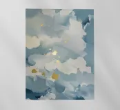 Soft blooming clouds burst with flickers of gold in quiet, misty rhythm.