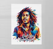Questo ritratto di Bob Marley in stile WPAP cattura il suo look iconico utilizzando angoli audaci e colori vivaci. La sua espressione rilassata e i suoi caratteristici dreadlocks sono resi con contrasti netti, dando un senso di movimento e di vita. Lo sfondo si ispira a motivi astratti di ispirazione reggae, rendendo il disegno vibrante e fresco. Il disegno unisce perfettamente lo status leggendario di Marley con uno stile artistico contemporaneo.