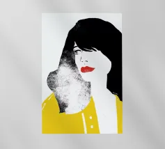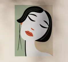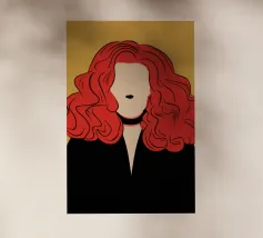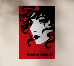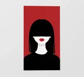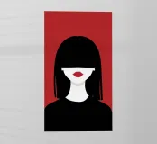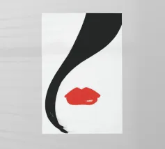 Un ritratto sorprendente e minimalista di una donna con un bob nero e un audace rossetto rosso. L'aspetto senza volto, che si concentra sulla silhouette e sulle caratteristiche principali, crea un'immagine moderna, grafica e misteriosa.