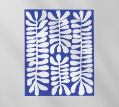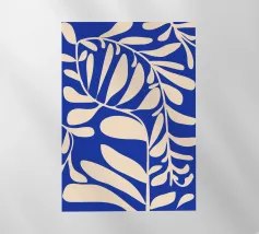 Motivo bohémien di botanica astratta in blu e bianco