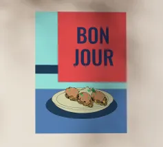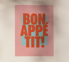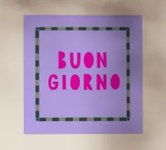 Questo motivo presenta l'allegra scritta "BON JOUR" in arancione brillante, disposta in modo dinamico su un motivo di rombi verdi su sfondo rosa. I forti contrasti di colore e la tipografia giocosa conferiscono all'immagine un aspetto fresco, energico e moderno. Ha un effetto amichevole e invitante e diffonde immediatamente il buon umore.