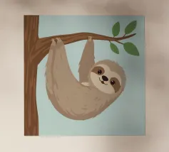 Bradipo appeso a un ramo in un ambiente tropicale con colore pellicola backlit
