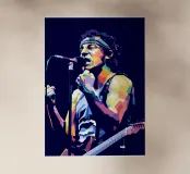 Bruce Springsteen in stile WPAP è un ritratto vibrante e geometrico del Boss, caratterizzato da forme audaci e spigolose e da sorprendenti contrasti di colore. Questa moderna tecnica pop-art cattura la sua intensa energia e la sua presenza leggendaria, riflettendo la sua profonda influenza sulla musica rock. Lo stile WPAP esalta la sua immagine iconica, sottolineando le sue performance appassionate e la sua abilità di narratore attraverso tinte dinamiche e ad alto contrasto.