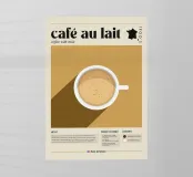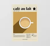 tazza di caffè café au lait mappa della francia testo del 1800 illustrazione di chicchi di caffè caffè con latte caffè preparato latte al vapore layout infografico descrizione della bevanda bevanda al caffè caffè francese icona mappa riferimento storico superficie cremosa del caffè contenuto della bevanda blocco di testo sfondo marrone bevanda calda scheda informativa