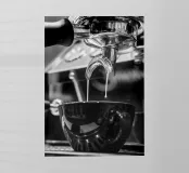 caffè espresso tazza macchina da caffè portafiltro vapore bevanda calda caffeina gocce caffè in infusione liquido manico crema barista tostatura scura riflesso versare preparazione della bevanda caffetteria cromo