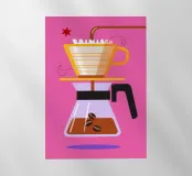 Illustrazione grafica di una caffettiera in azione, su uno sfondo rosa intenso. La rappresentazione moderna e stilizzata è un perfetto omaggio all'arte e al rituale del caffè speciale.