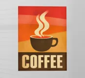 Questo poster nostalgico celebra il caffè con le immagini iconiche degli anni Settanta. Le sfumature di colore orizzontali nei toni del rosso, dell'arancione e del giallo ricordano l'estetica del viale del tramonto e le classiche insegne dei diner statunitensi. Le nuvole di vapore stilizzate e la chiara silhouette della tazza mostrano influenze dell'art déco e del design grafico di metà secolo. L'audace tipografia nella parte inferiore conferisce al pezzo un carattere sorprendente. Il perfetto equilibrio tra arte decorativa e design funzionale. Un must per gli amanti del vintage e del caffè, per le caffetterie e le cucine.