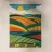 Un paesaggio vibrante di campi coltivati, ricchi e ondulati, sotto un cielo soleggiato con nuvole soffici. La rappresentazione stilizzata e colorata della campagna celebra la bellezza e l'abbondanza dei terreni agricoli.