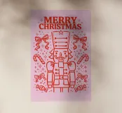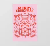This cheerful nutcracker marches across a pink candy-coated world, surrounded by bows, sparkles, and sugar treats. A whimsical twist on a timeless classic.