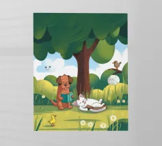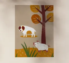 Ispira l'amicizia! La stampa di alta qualità presenta un cane e una pecora amichevoli, perfetti per l'arredamento della casa, per regali unici o per collezioni personali. Questo simpatico e affascinante disegno rallegrerà la vostra giornata!