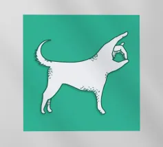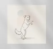 Cane giocoso in piedi su due zampe in un semplice artistico pellicola backlit