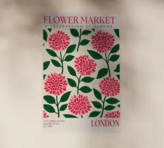 A repeat pattern of bright pink carnations with layered petals offers a sense of nostalgia and decorative charm.