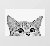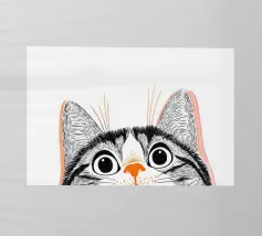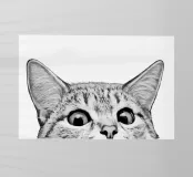 Un gatto meme che sbircia dal bordo di un bancone con grandi occhi spalancati