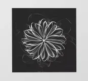 A mesmerizing, ethereal flower unfolds against a deep black background, radiating an otherworldly glow. Its intricate petals and delicate lines evoke a sense of cosmic beauty and tranquility.