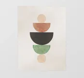 Aggiungete un tocco di fascino minimalista al vostro spazio con questa vibrante stampa d'arte astratta moderna di metà secolo, caratterizzata da un'ipnotica miscela di forme geometriche e fluide di acquerello su uno sfondo neutro morbido e cremoso. Con la sua calda atmosfera scandinavo-giapponese, non è solo arte: è un'atmosfera.