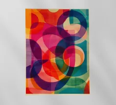Un capolavoro ipnotico di astrazione geometrica! Cerchi trasparenti e luminosi di colore magenta intenso, rosso, arancione e oro si sovrappongono su un delicato sfondo rosa, creando profondità vibranti ed energia pulsante. Lo stile ricorda la Op Art di Victor Vasarely e Bridget Riley, ma è più morbido, quasi digitale-poetico, con un accenno alla teoria del colore di Josef Albers. Questo dipinto è pura vibrazione: attira lo sguardo in un movimento senza fine, risvegliando gioia e vitalità interiore. Un classico contemporaneo che apre spazi e fa danzare l'anima. Ottimista da togliere il fiato!