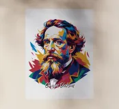 Celebrate l'eredità letteraria di Charles Dickens con questo vivace disegno Pop Art di WPAP. Utilizzando audaci forme geometriche e una tavolozza colorata, questa opera d'arte reinterpreta l'iconico autore in uno stile moderno e astratto. La tecnica WPAP (Wedha's Pop Art Portrait) dà vita all'immagine di Dickens, catturando lo spirito della sua narrazione e i temi sociali prevalenti nelle sue opere. Perfetto per gli amanti della letteratura, gli appassionati d'arte e i fan dei romanzi classici, questo disegno è un tributo unico a uno dei più grandi scrittori dell'epoca vittoriana.