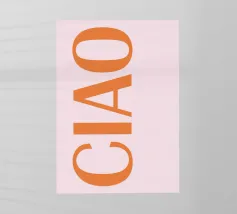 Un design tipografico divertente con un grande e caldo CIAO italiano - per far entrare un po' di sole mediterraneo!
