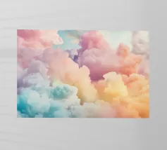 Bellissimo cielo colorato con nuvole chiare e scure. Illustrazione d'atmosfera con colori pastello tenui, potrebbe essere un tramonto o un'alba.