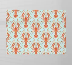 Un allegro motivo costiero con vivaci aragoste e conchiglie disposte in una semplice ripetizione all-over. Fresco, balneare e un po' preppy. Perfetto per portare le vibrazioni estive e il fascino del mare nella vita di tutti i giorni.