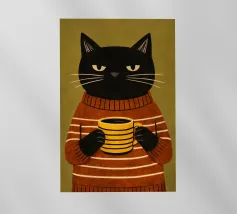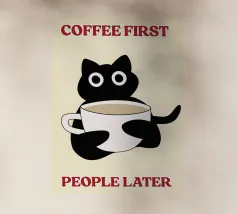 A whimsical purple monster with sharp teeth, bright yellow eyes, and a mischievous grin clutching a blue coffee mug. The playful cartoon style adds a fun, quirky vibe perfect for humorous or caffeine-themed projects.