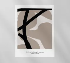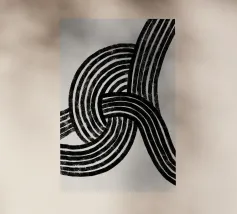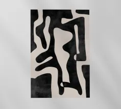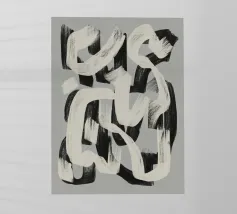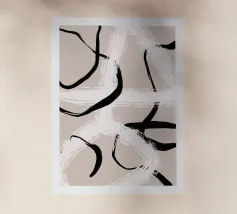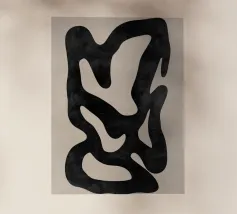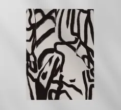 Una potente rete di linee nere che si piegano e si intersecano, come flussi di pensiero contrastanti su uno sfondo neutro. La composizione ricorda l'astrazione gestuale, con echi di Franz Kline e dell'arte dell'inchiostro giapponese. Nonostante l'austerità della tavolozza dei colori, si sviluppa una dinamica espressiva. Un'opera che trae tensione dalla riduzione e carica lo spazio di pura energia visiva. Anche su tessuti.