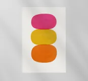 Tre aree ovali di colore rosa, giallo e arancione formano una composizione calma ed equilibrata. Il poster moderno ha un aspetto amichevole, leggero e strutturato allo stesso tempo - perfetto per gli interni con un linguaggio di design chiaro e un effetto cromatico positivo. Ideale per gli studi creativi, i soggiorni o come elemento di spicco in ambienti minimalisti.