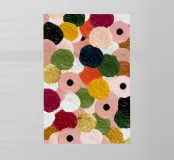 Un dipinto astratto audace e gioioso, caratterizzato dalla sovrapposizione di forme circolari nei toni vibranti del verde, giallo, rosa, rosso e blu intenso. Le pennellate creano un ritmo dinamico e giocoso, trasformando la tela in una celebrazione del colore e del movimento. Perfetto per aggiungere energia moderna e tocco artistico a qualsiasi interno contemporaneo.