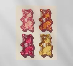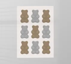 Un'illustrazione vivace e giocosa con un motivo senza soluzione di continuità di orsetti gommosi multicolori su uno sfondo chiaro. Un disegno allegro e nostalgico, perfetto per aggiungere un tocco di colore a qualsiasi spazio. Ideale per gli amanti delle caramelle, l'estetica retrò, l'arredamento dopaminico e gli interni divertenti e stravaganti.