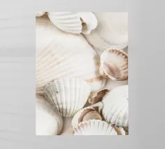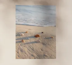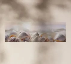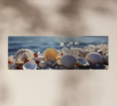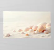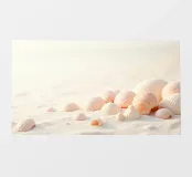 Delicate conchiglie riposano su una spiaggia morbida e sabbiosa, catturando il caldo bagliore del sole del primo mattino. L'atmosfera serena esalta la bellezza di questo habitat costiero.