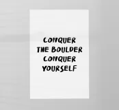 Un design come un grido: "CONQUISTA LA BOULDER. CONQUISTA TE STESSO" non è solo uno slogan, ma un impegno interiore. La potente tipografia in nero profondo su sfondo bianco sembra cesellata: diretta, chiara, senza compromessi. Questo motivo parla la lingua di tutti coloro che non solo riconoscono i propri limiti, ma li sfidano attivamente. Ricorda che il masso non è solo un ostacolo fisico, ma anche uno specchio della propria forza interiore. Chi vince il masso vince anche i dubbi, le paure e le resistenze interiori.