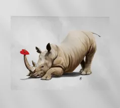 Con un po' di spiritoso rispetto e omaggio all'artista Albrecht Dürer! Il rinoceronte stappa il tappo per celebrare il talento di questo e di tutti i creativi del mondo.