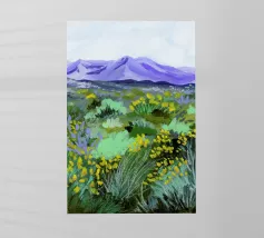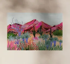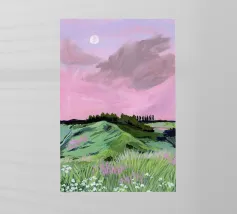Sarah Gesek conferisce ai suoi paesaggi un'atmosfera da paese delle meraviglie ultraterreno con colori ricchi e porta mondi lontani nelle vostre case. L'artista di Seattle preferisce lavorare con colori acrilici su carta, ma anche con gouache, matite colorate, pastelli a cera e altro ancora. Ispirate dallo spettacolo naturale di rocce scoscese e giardini ondulati, notti stellate e cieli atmosferici, le opere di Sarah infondono un senso di vagabondaggio. Immergetevi, camminate e innamoratevi di nuovo del nostro mondo.
