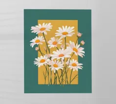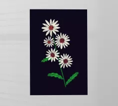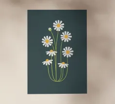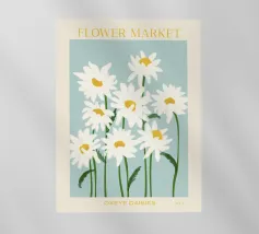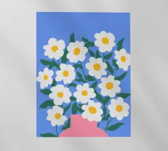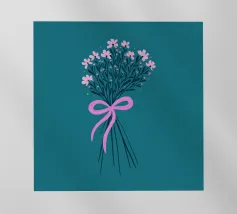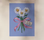 A sweet and romantic illustration of a bouquet of white daisies tied with a pink ribbon. A small tag that reads 'to my love' is attached, making this a perfect depiction of a heartfelt, romantic gesture.